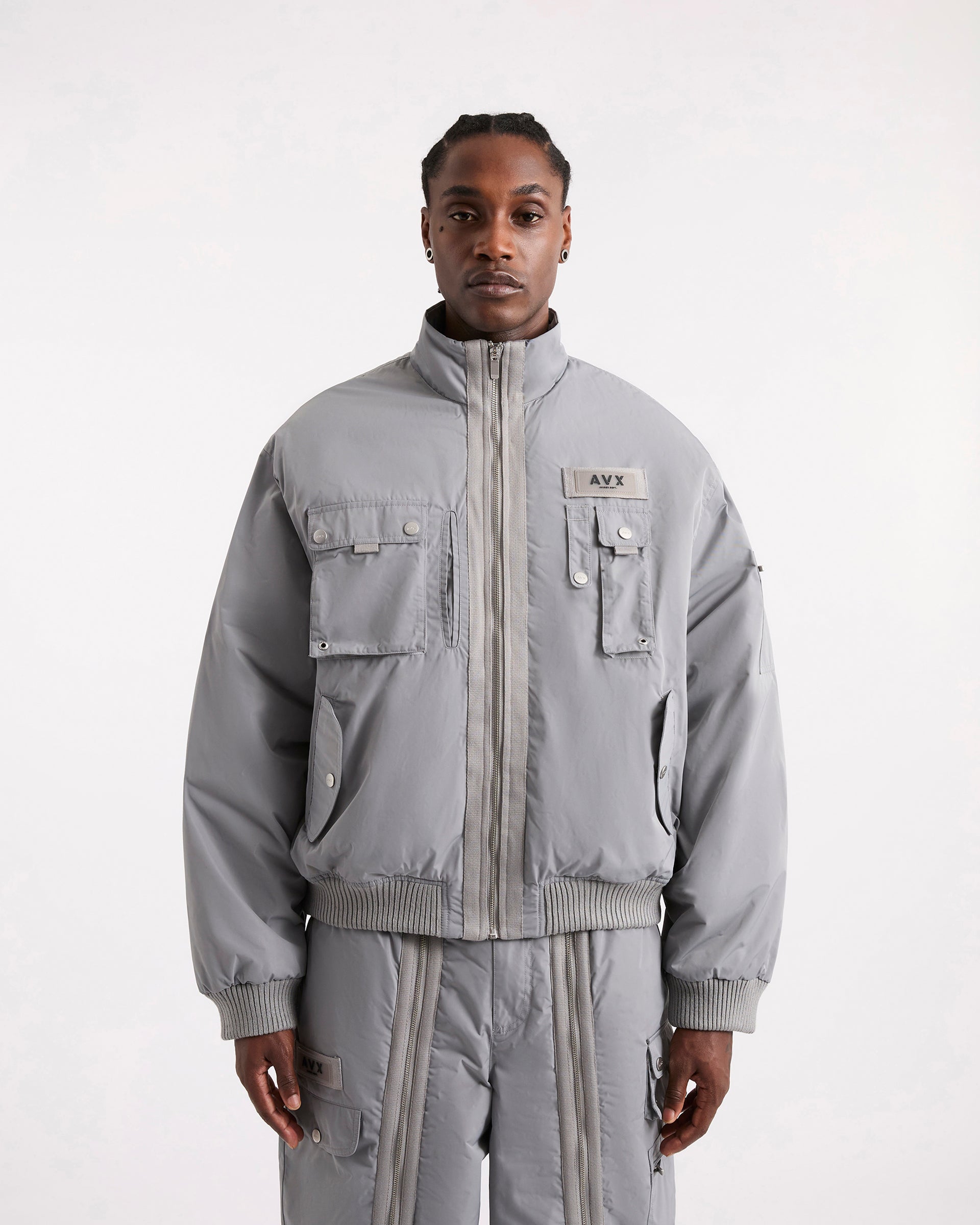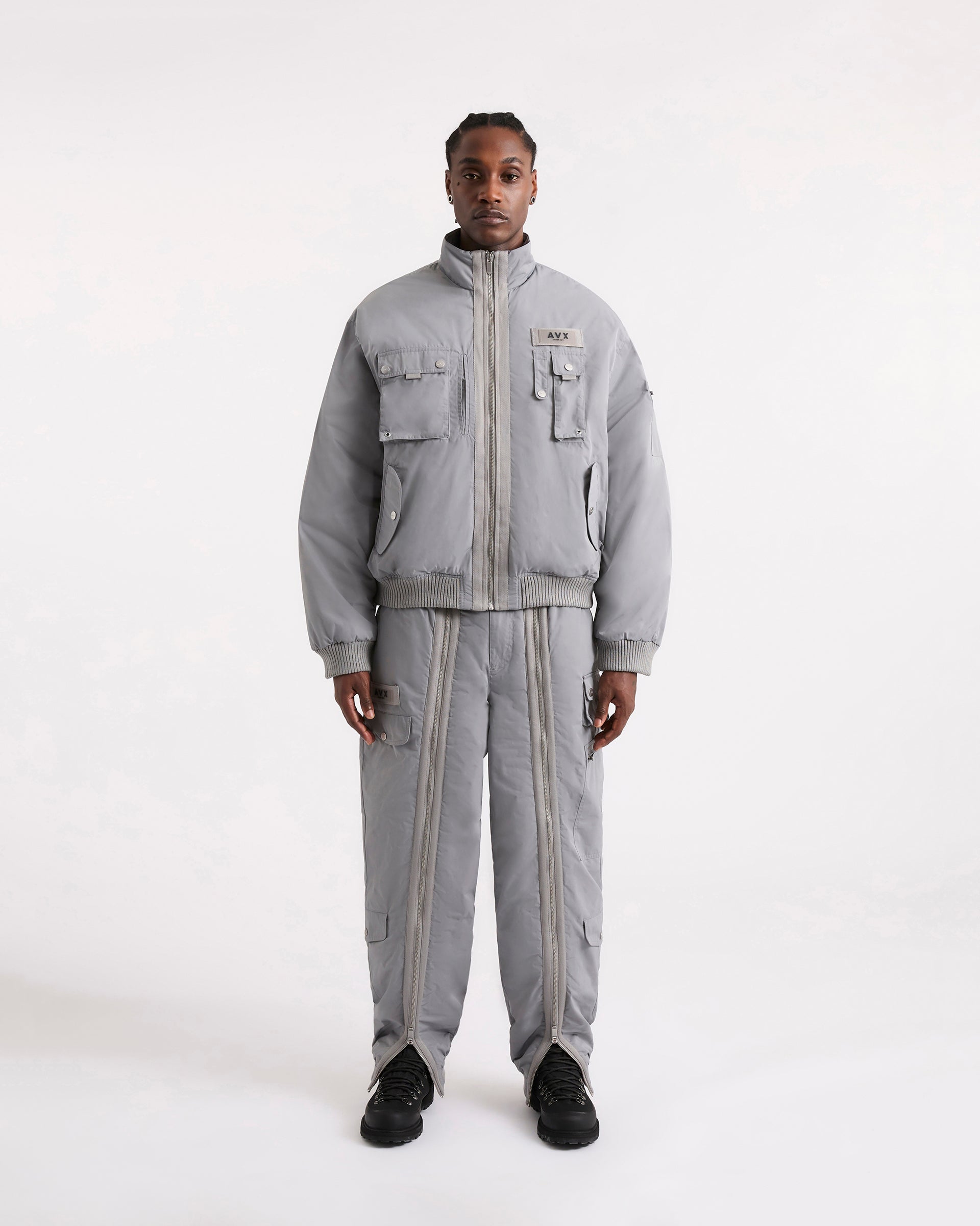 The Callo Flight Jacket is our highlight utility offering for AW25. Inspired by aviation, the oversized silhouette balances functional utility and modernity. Crafted from polyester, it features a silicone AVX badge, 6 external pockets, functional eyelets, button closures, zips, and a D-ring finish. Pairs perfectly with our Roose Flight Pant for the complete look.