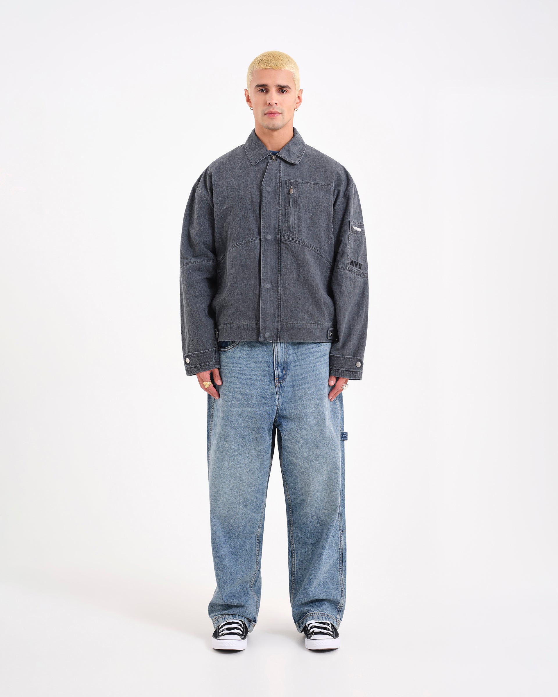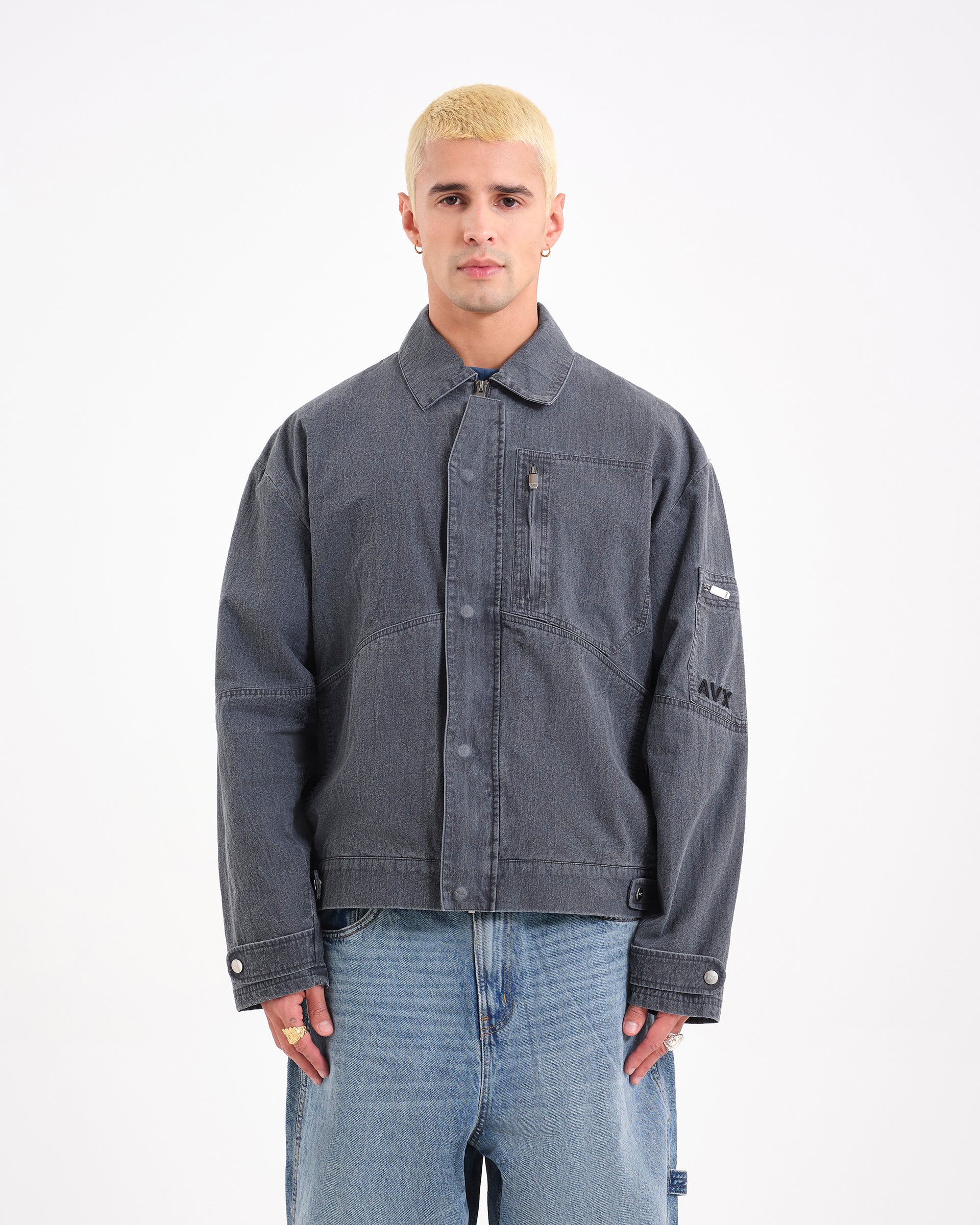 The Mach Bomber. A technical approach to outerwear. Cut with a boxy, drop-shoulder profile, this bomber is crafted from a durable cotton-polyamide blend. Finished with heavy metal hardware, including branded press studs and zips, plus garment dyeing for depth of color.