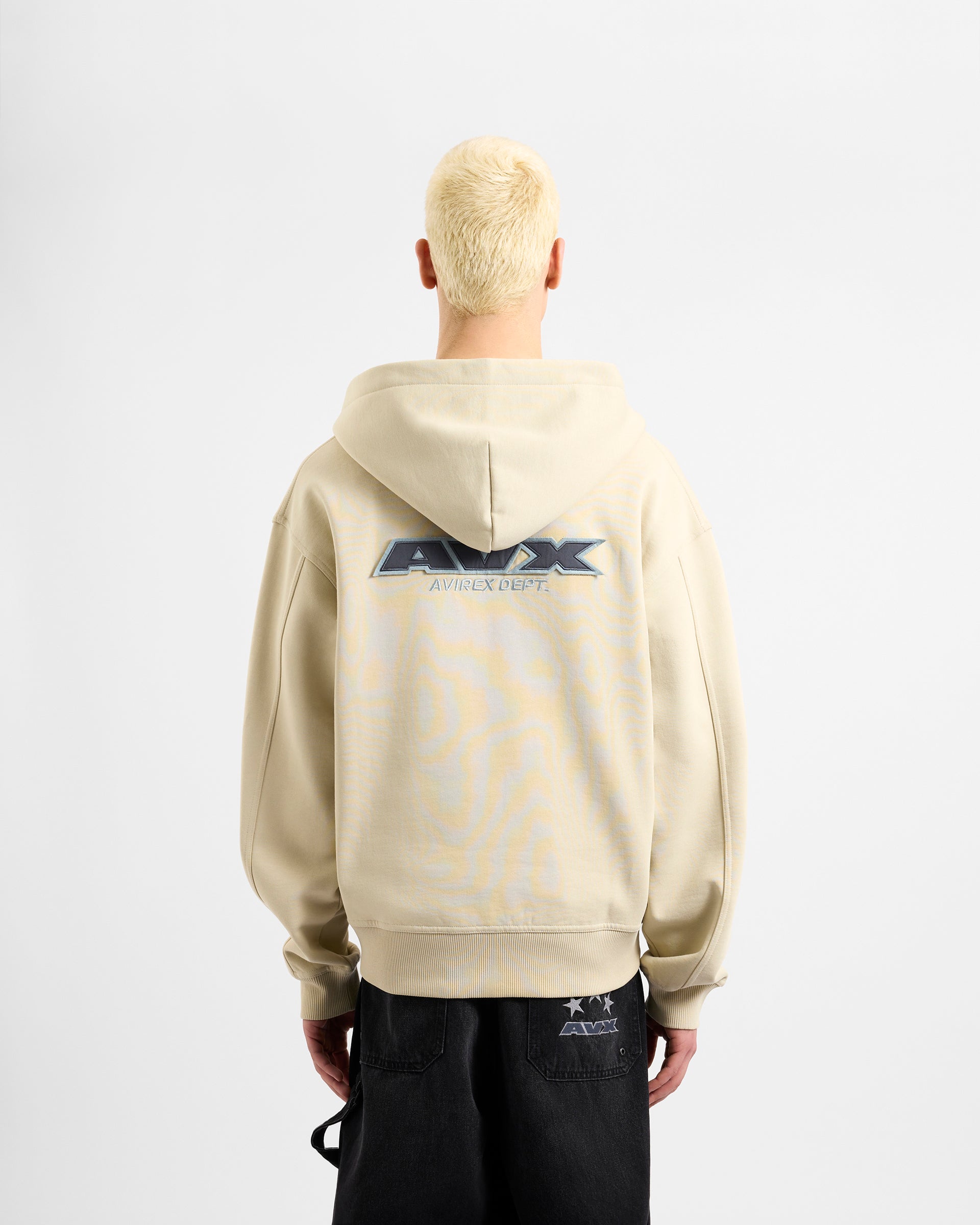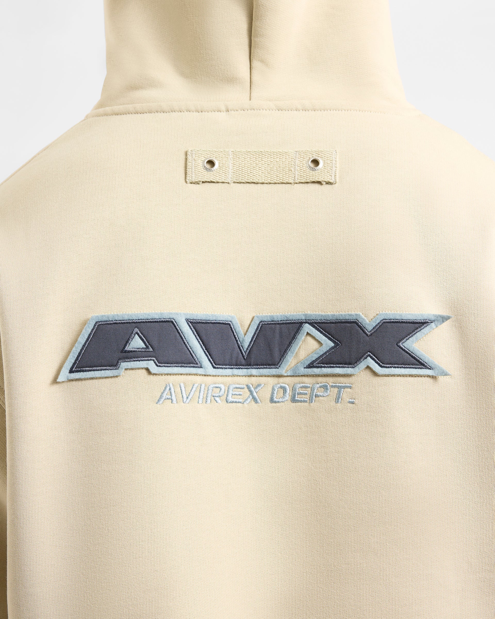 The Rugged Full Zip Hoody. Crafted from high quality cotton this oversized hoodie is designed for all day maximum comfort. Complete with AVX chest and back branding and eyelet detailing for the ultimate street style. This design is complete with ribbed hem and cuffs for the perfect fit.