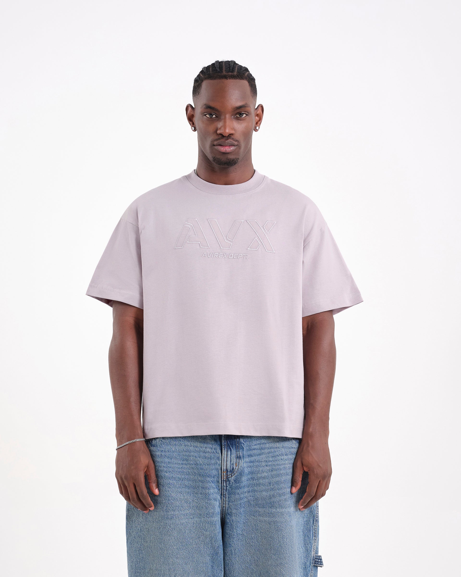 The Velocity T-Shirt. A defining piece for the season, featuring bold AVX branding on the chest. Constructed from premium single jersey cotton with a drop shoulder silhouette, this tee combines heavy visual impact with a relaxed drape.